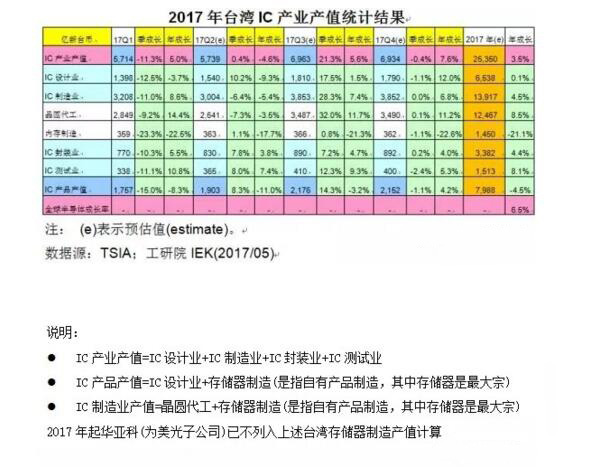若以1人民幣元=0.1452美元匯兌計算,2017年首季大陸IC制造約計38.6億美元;IC設(shè)計51億美元、封裝48.8億美元。除了IC制造業(yè)仍較遠(yuǎn)落后于臺灣地區(qū),IC設(shè)計業(yè)、封裝測試均已大幅超過臺灣地區(qū)的產(chǎn)值。