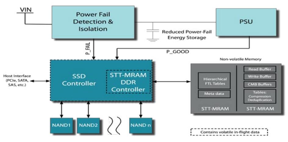 圖1.STT-MRAM取代了高級(jí)SSD架構(gòu)中的DDR