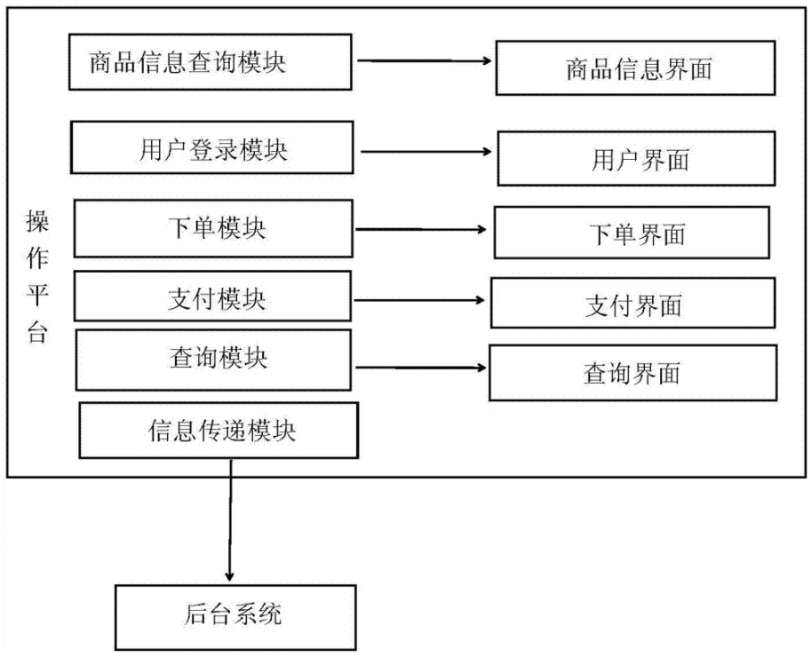 基于實物展示的共享網絡銷售柜,該銷售柜柜設有多個展示臺和操作電腦;展示臺用以擺放展示商品,展示柜分為多層多格,用以存放不同的物品;操作電腦連通公共網絡,具有主機和操作平臺;操作平臺上設有商品信息查詢模塊,用戶登錄模塊,下單模塊,支付模塊,查詢模塊和信息傳遞模塊;買家通過展示臺選中商品后,在操作平臺上登錄商品信息查詢模塊,通過該商品信息查詢模塊的商品信息界面了解商品信息,通過用戶登錄模塊的用戶界面登錄,通過下單模塊的下單界面購買商品,通過支付模塊的支付界面完成付款和打印發票,通過查詢模塊的查詢界面查詢購買信息;信息傳遞模塊將用戶購買信息通過網絡發送給商家;商家接收到購買信息后,通過物流將產品發送給買家。