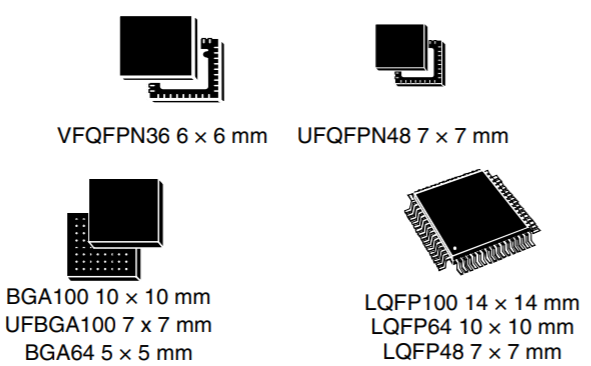 MM32F103C8T6產品提供 LQFP100、LQFP64、LQFP48、LQFP32 和 QFN32 共 5 種封裝形式;根據不同的封裝形式,器件中的外設配置不盡相同。