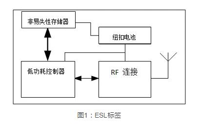 結(jié)構(gòu)最簡(jiǎn)單的ESL由一個(gè)LCD或電子、RF模塊、墨水顯示屏、配套處理器、紐扣電池和低引腳數(shù)存儲(chǔ)器(易失性和非易失性存儲(chǔ)器)構(gòu)成。可以根據(jù)需求功能的不同,將所需要的價(jià)格走向,購(gòu)買(mǎi)走向和當(dāng)前庫(kù)存信息存儲(chǔ)在ESL中,待一天結(jié)束刷新中央服務(wù)器的數(shù)據(jù)。如果要實(shí)現(xiàn)用一顆小紐扣電池供電并維持?jǐn)?shù)幾年的工作機(jī)能需要讓整個(gè)系統(tǒng)使用一個(gè)低功耗控制器和存儲(chǔ)器。基于內(nèi)置的連接選項(xiàng)(通常是BLE或Wi-Fi),板載存儲(chǔ)器可兼作協(xié)議棧存儲(chǔ)空間,繞過(guò)商場(chǎng)的中央服務(wù)器,直接連接用戶(hù)手機(jī)。